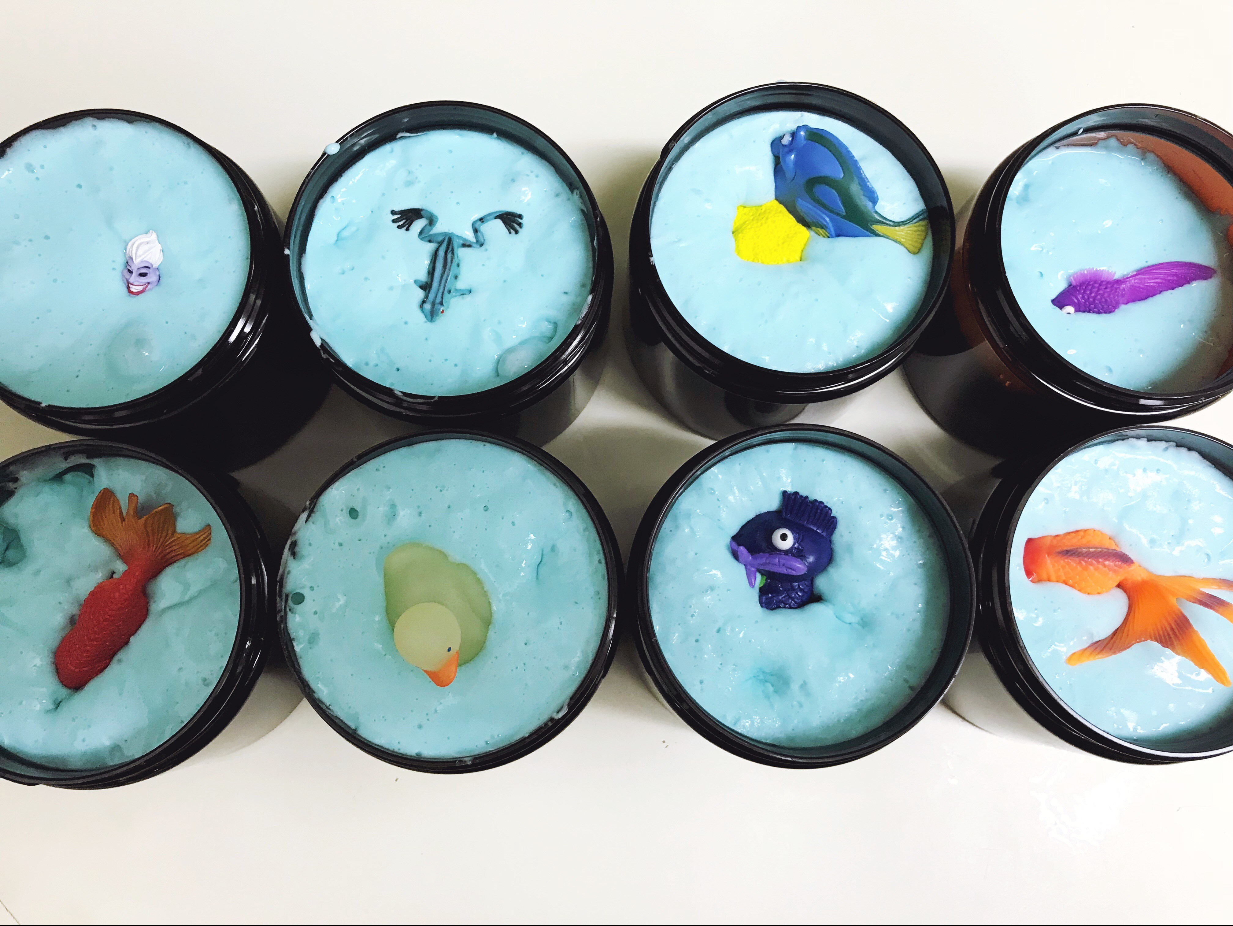 - Once everything is perfect go ahead and equally divide up into jars or bags. We created an assembly line where I would place the slime in and my son would pick the toy and put in each package. Repeat steps 1 – 5 until you have as many slime gifts as you need.