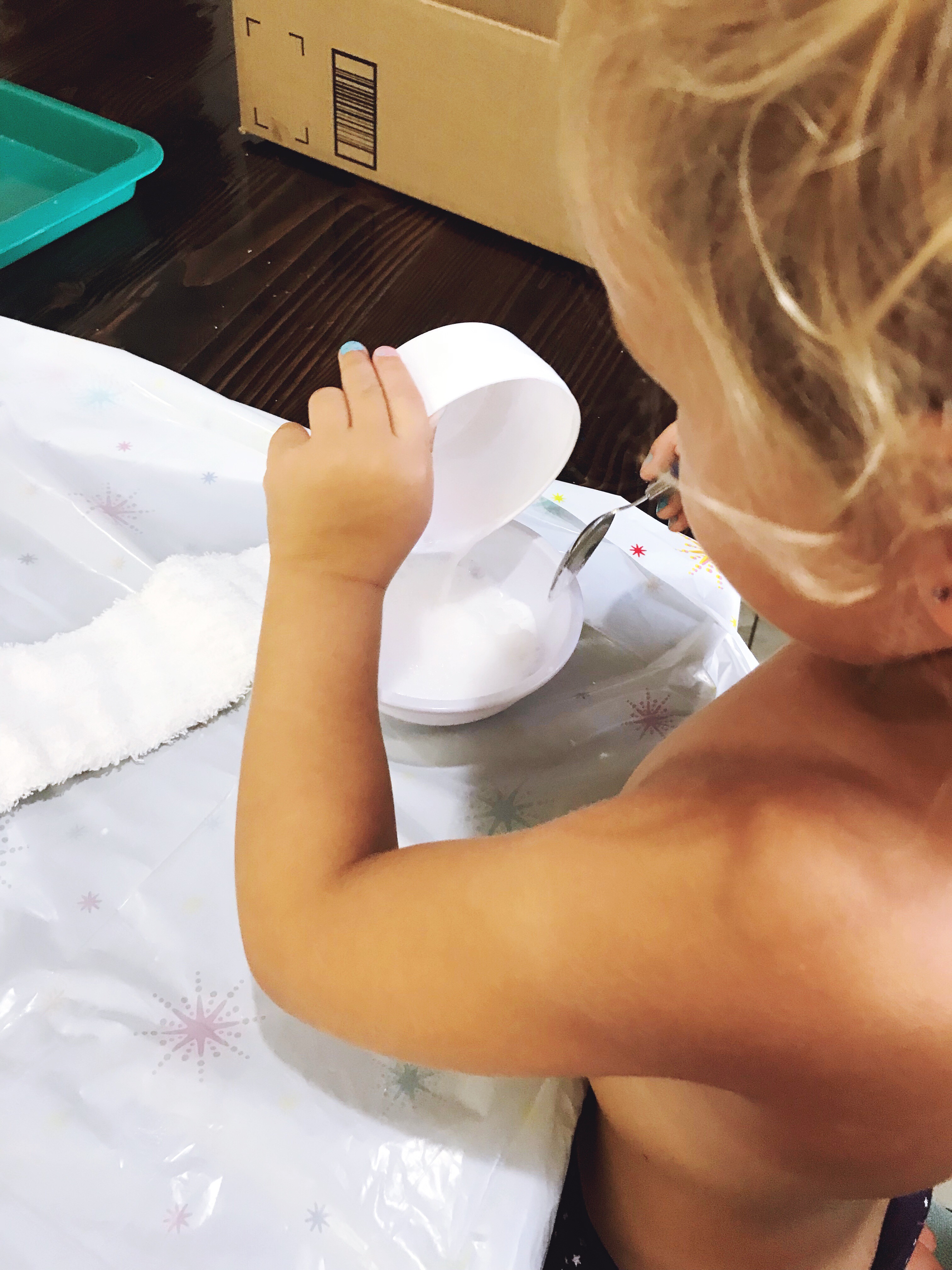 During my pregnancy I have had more days than I’d like to admit that it is hard to function. I always feel so guilty putting my kids on electronics to occupy their time because I am to sleepy to entertain or play. This mixing table has been a go to for me this summer. It’s so easy, my little absolutely love it, and it entertains them and keeps them mixing and matching for hours.