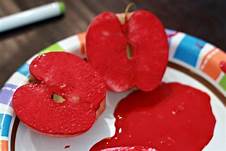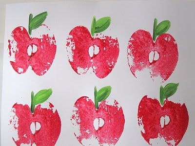 Apple Stamps – Take an apple, cut it in half. Grab some card stock and paint. Let the kids use the half apple as a “stamp” by dipping into the paint and letting their imaginations fly to what they want to make! Below are some inspiration ideas to get you started.
