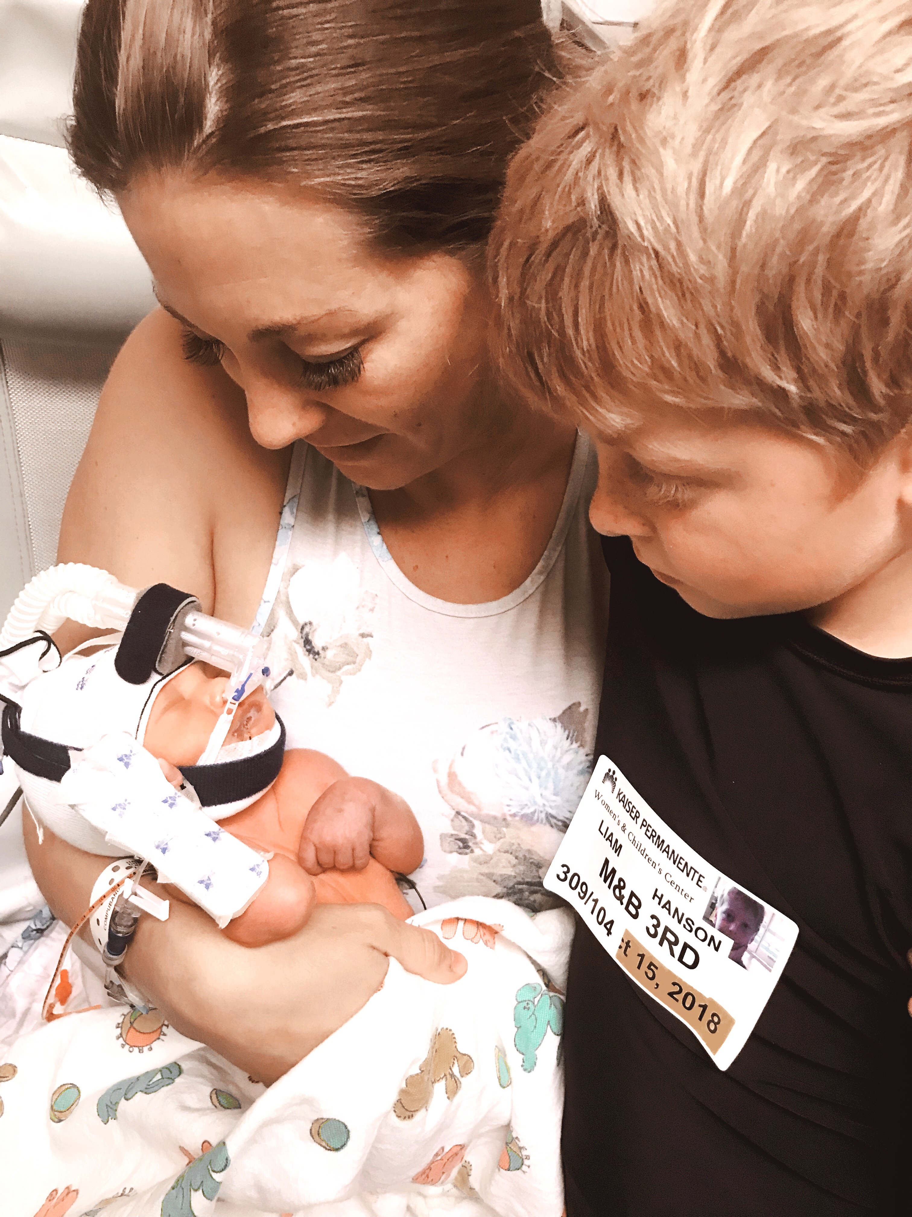 When walking in the fear that overcame my body made me feel like I could just collapse right then and there in the middle of the NICU. Baby Tristan was attached to every cord known to man. He had a feeding tube up his nose, a breathing mask on so I couldn’t even see his little face. My husband and I just sat there while I sobbed. He had to leave after 24 hours of being at the hospital with me to be with our other children and explain why baby brother was not coming home just yet. Every care hour I could, I was walking to the NICU to sit with Tristan by his POD. (The first couple days we were only allowed to hold him once a day.)