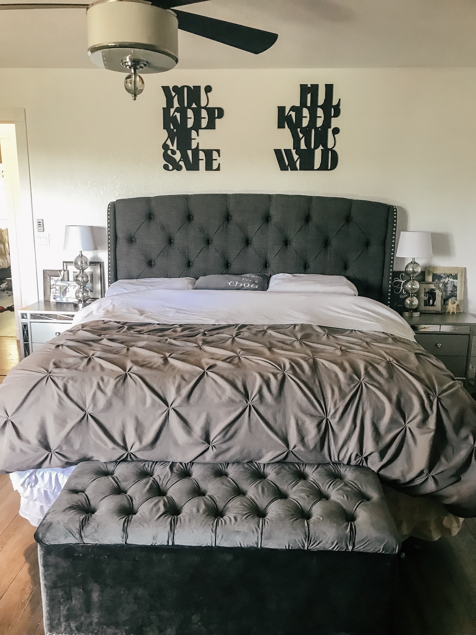 The bedroom reveal (and all my flops along the way.) I knew when I redid our bedroom that the intention would be a clean space that was bright, relaxing, and simple. The rest of my house is farm house so I needed to incorporate that in somehow but loved the idea of all black, white, and grey. When first designing or getting ready to redecorate any space I always do the first three things.